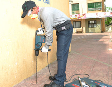 二、在发现白蚁危害的地方,将木制门窗框按一定距离钻孔灌注药液,周边土壤同时喷洒药液,使木材及土壤都含有一定的毒素,白蚁活动触毒取食都会中毒而死亡。