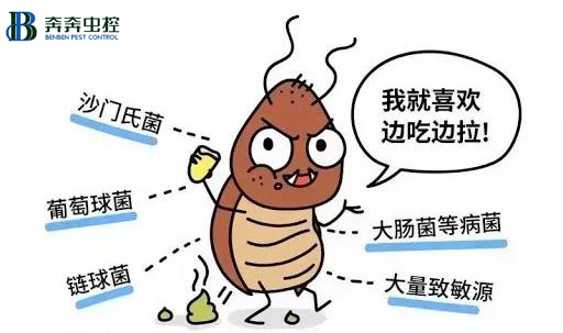 蟑螂已被证明携带约40种对颈椎动物致病的细菌,其中重要的如传染麻风分支杆菌、传染腺鼠疫杆菌、传染痢疾的志贺氏痢疾杆菌、引起尿道感染的绿脓杆菌以及多种沙门氏菌.....--来自科学出版社出版的《除四害指南》