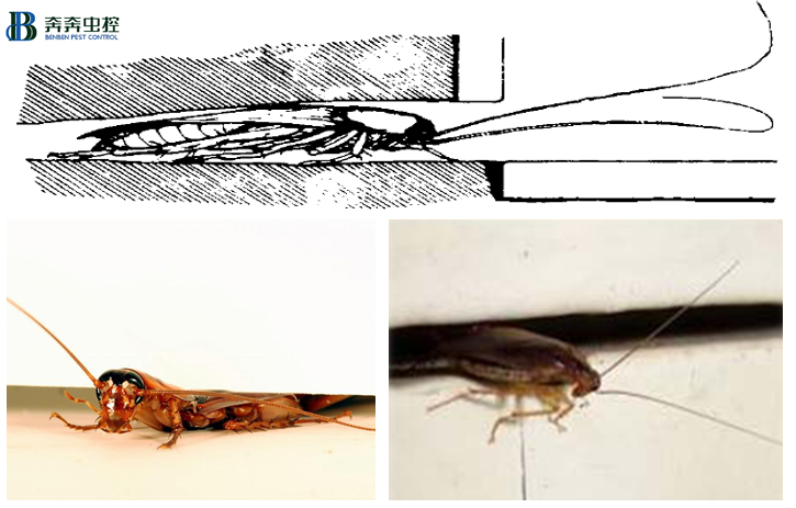 蟑螂体扁,适于钻缝藏洞,可以躲进很窄小的缝洞中。