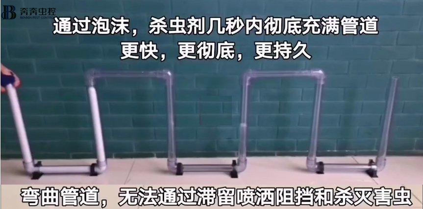 因为下水道管道长,且多弯曲,常规的处理以及清洁很难深入,这个时候你就需要进行深度处理了,可以通过泡沫处理(清洁剂+杀虫剂)既可以实现清洁,同时也可以实现杀灭幼虫。
