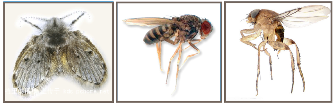 小飞虫,其实这个叫法并不是很专业,只是从孳生的环境来简单分类的,一般来说,主要是指:蛾蠓、果蝇、蚤蝇