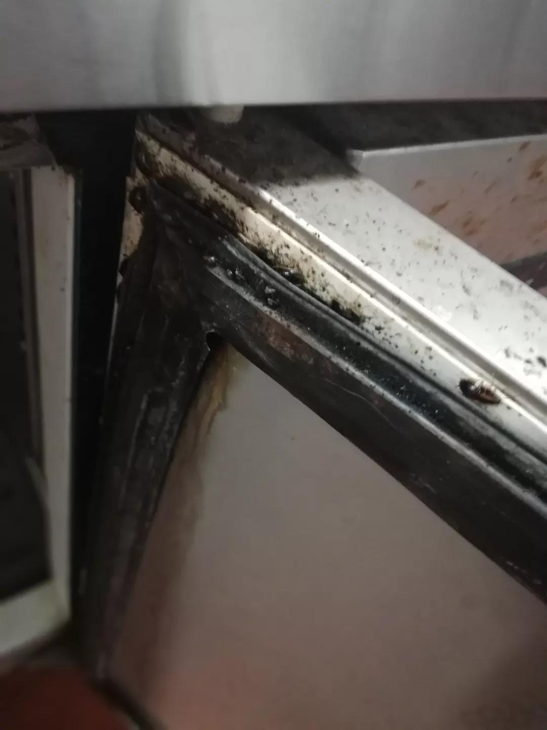 冰箱门缝胶条如果不注意卫生清洁,会有很多食物残渣和水气积聚,久而久之甚至会发霉,这里温暖多缝隙,蟑螂藏匿其中不亦乐乎。
